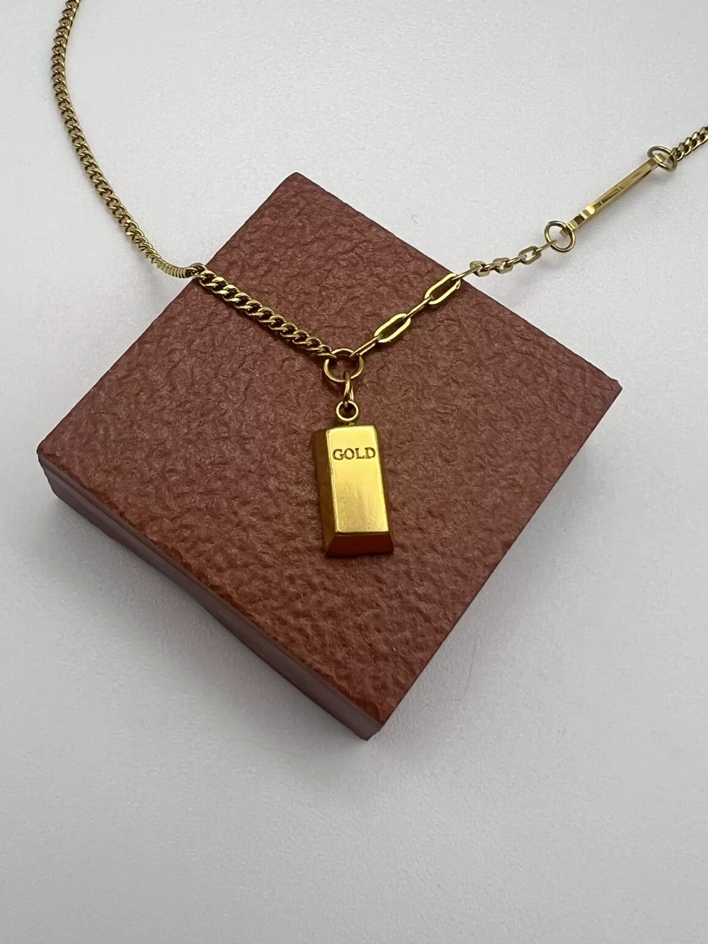 Çelik Altın Külçesi Kolye 40+5cm