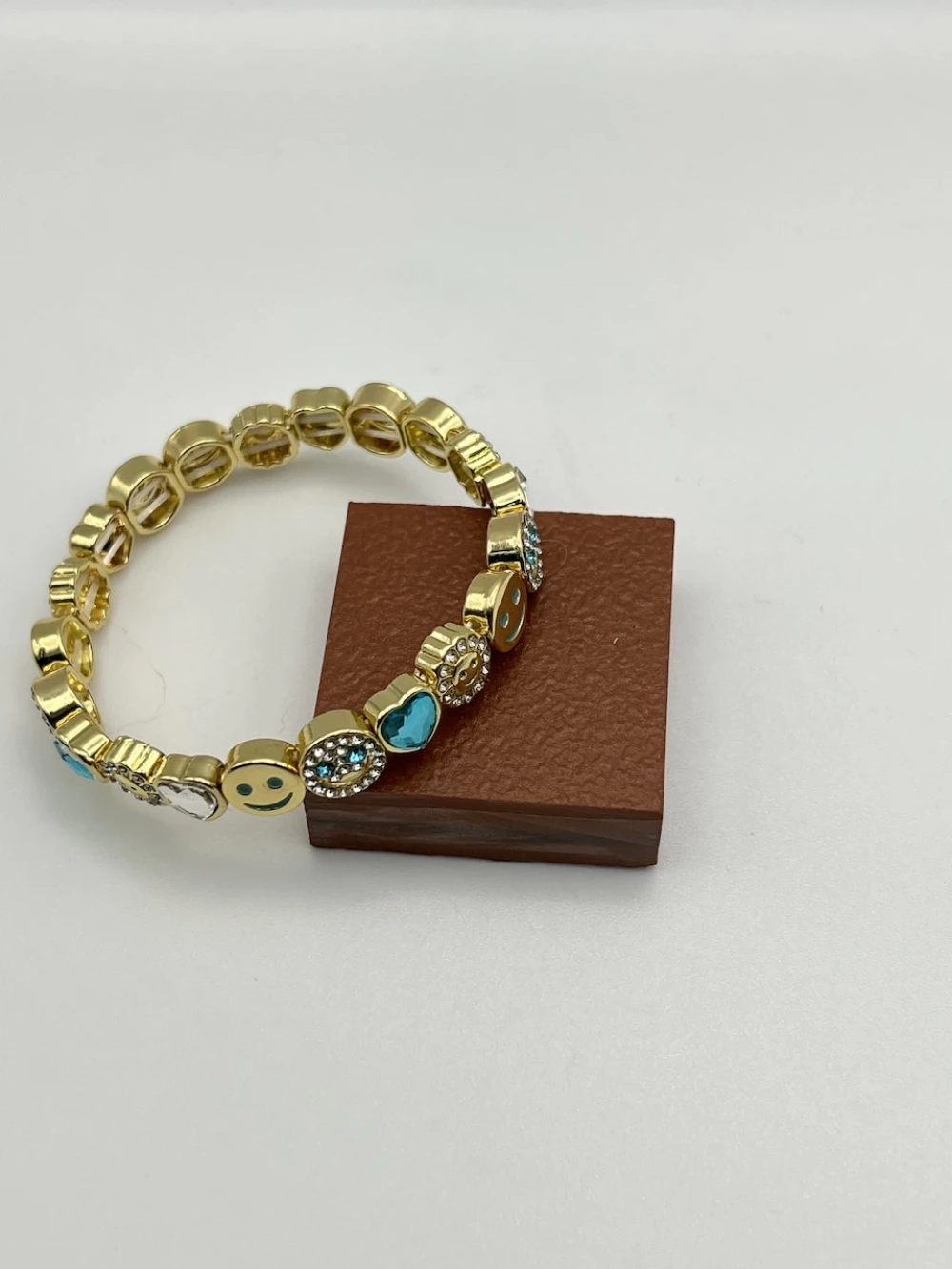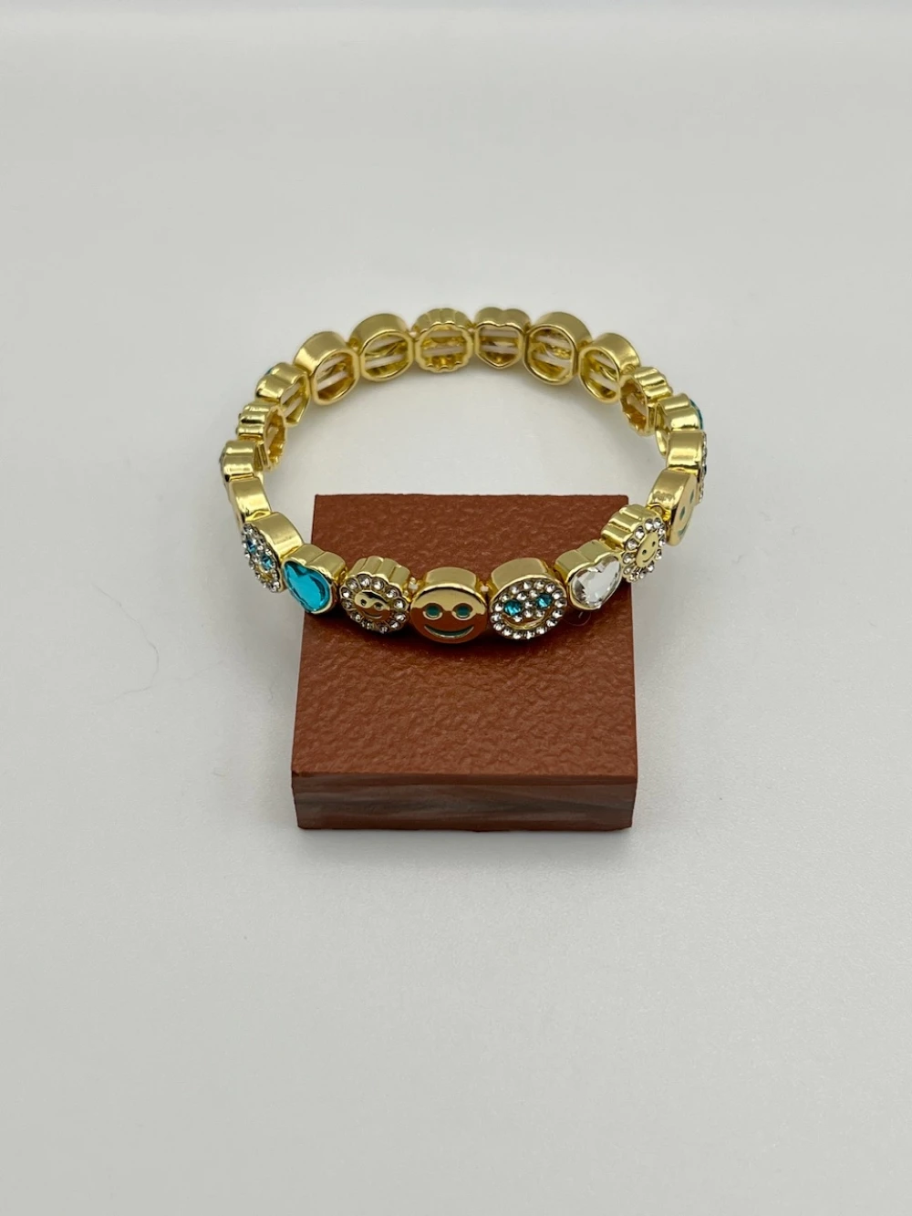 Kristal Taşlı Emojili Lastikli Bileklik (turkuaz)