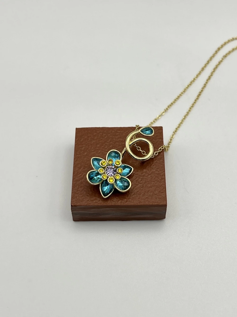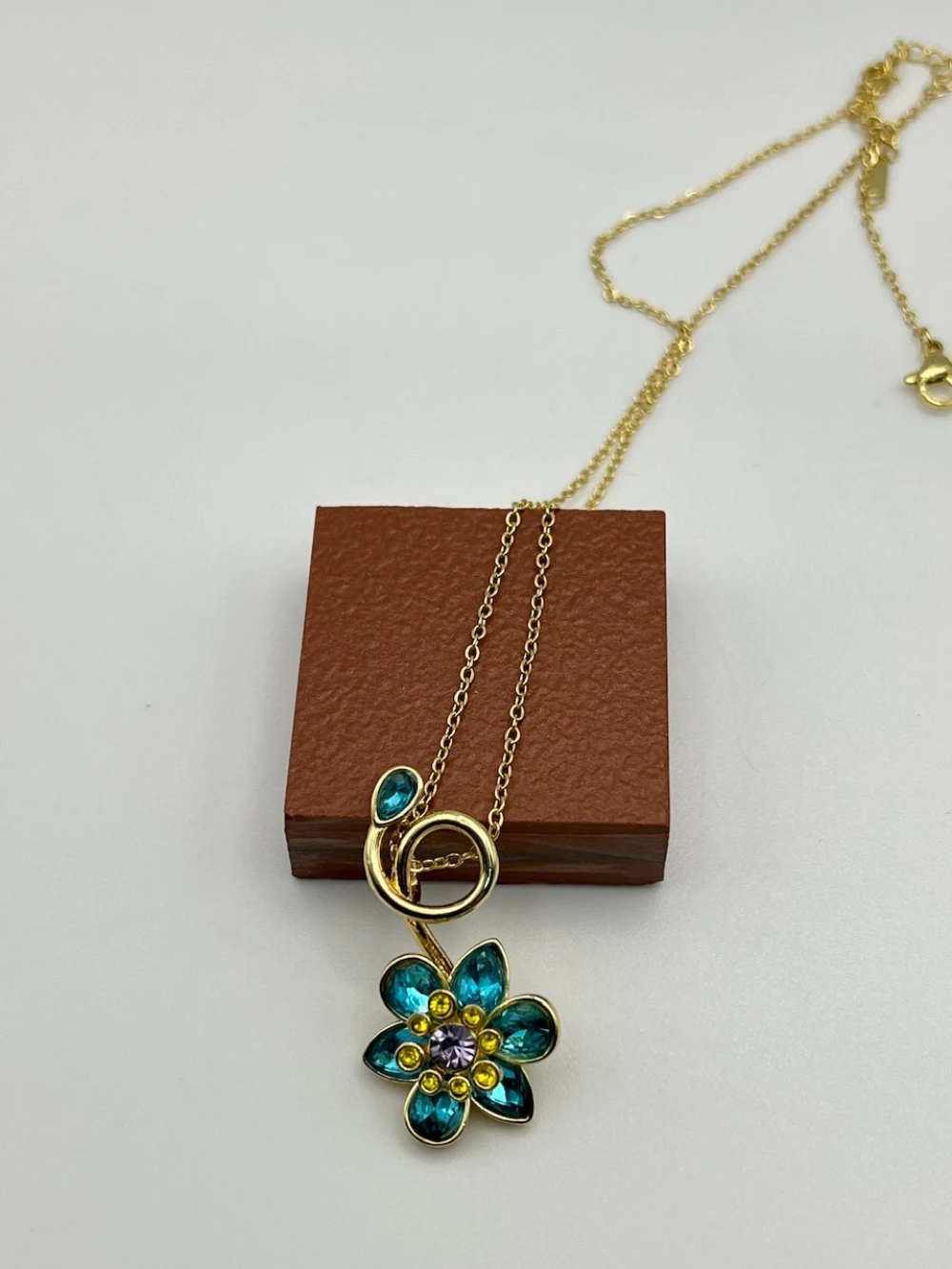 Kristal Taşlı Mavi Masal Çiçeği Çelik Kolye