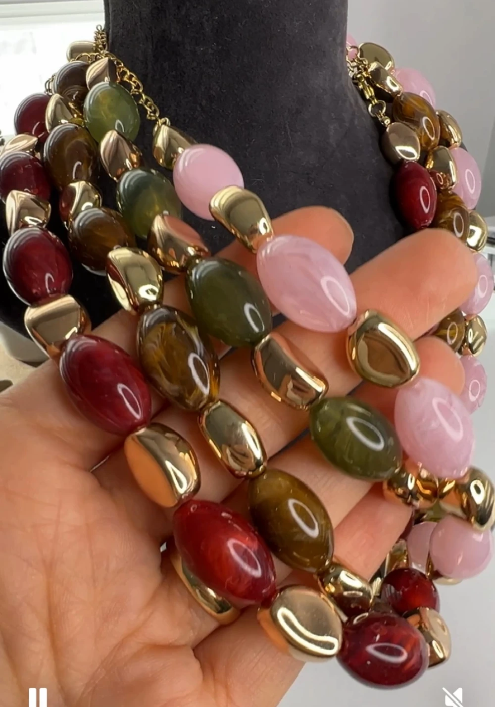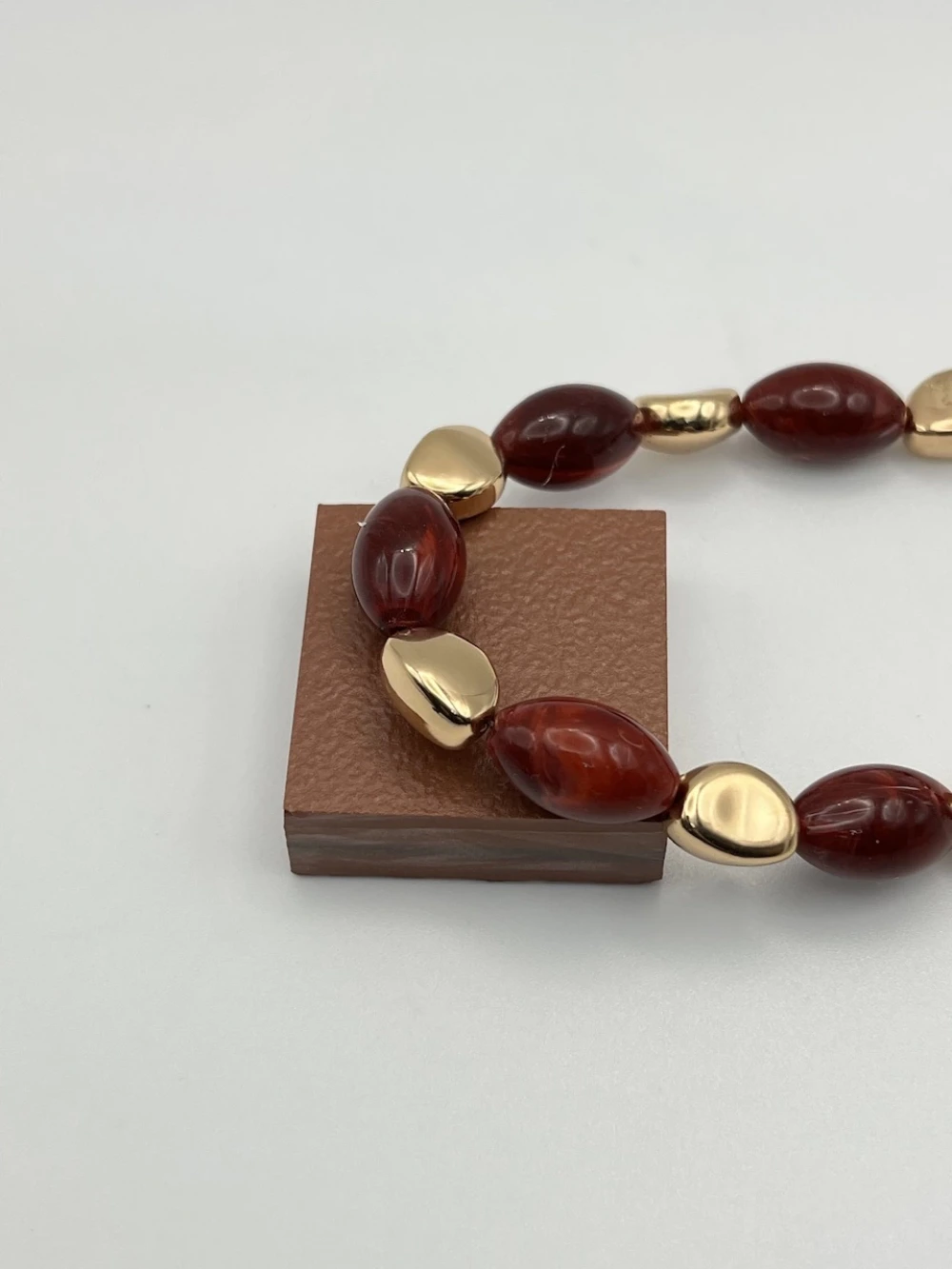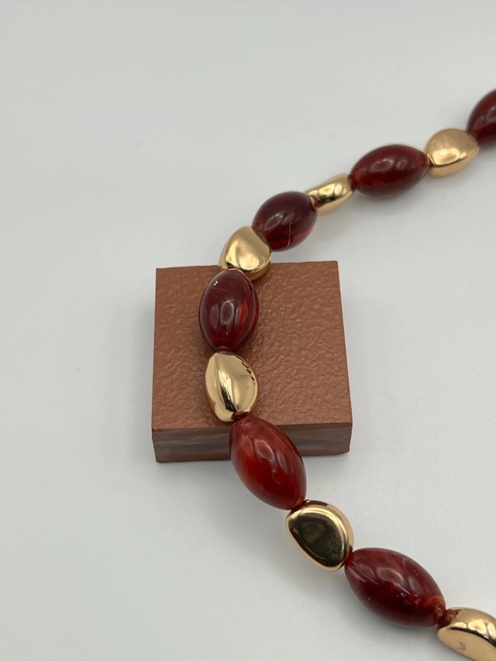 Özel Seri Taşlı, Boncuklu Kolye 44+7cm (bordo)