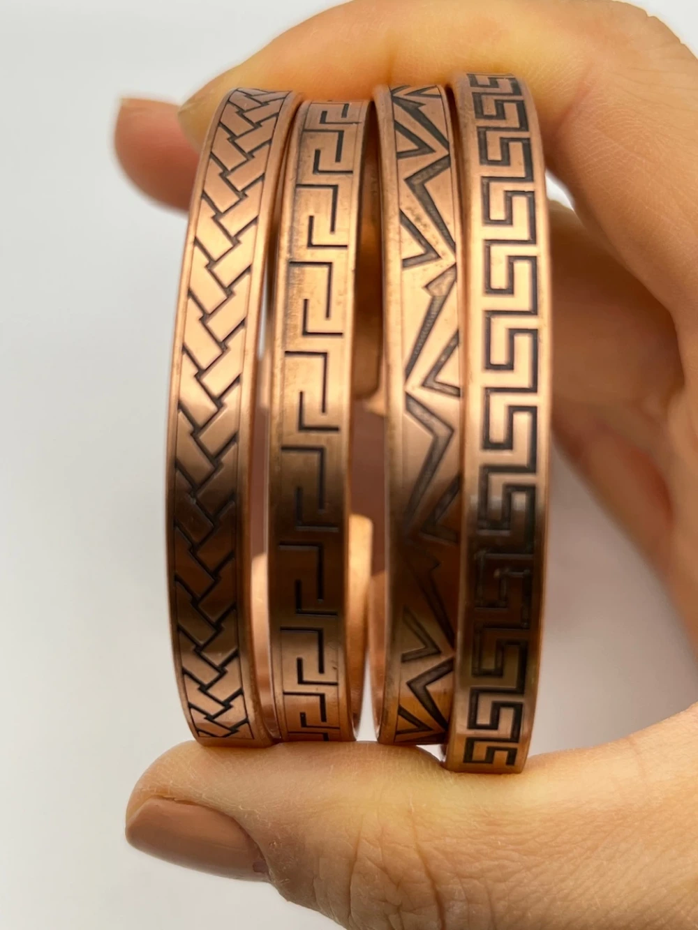 Ünisex Desenli Bakır Kelepçe Bileklik 6.5cm no3